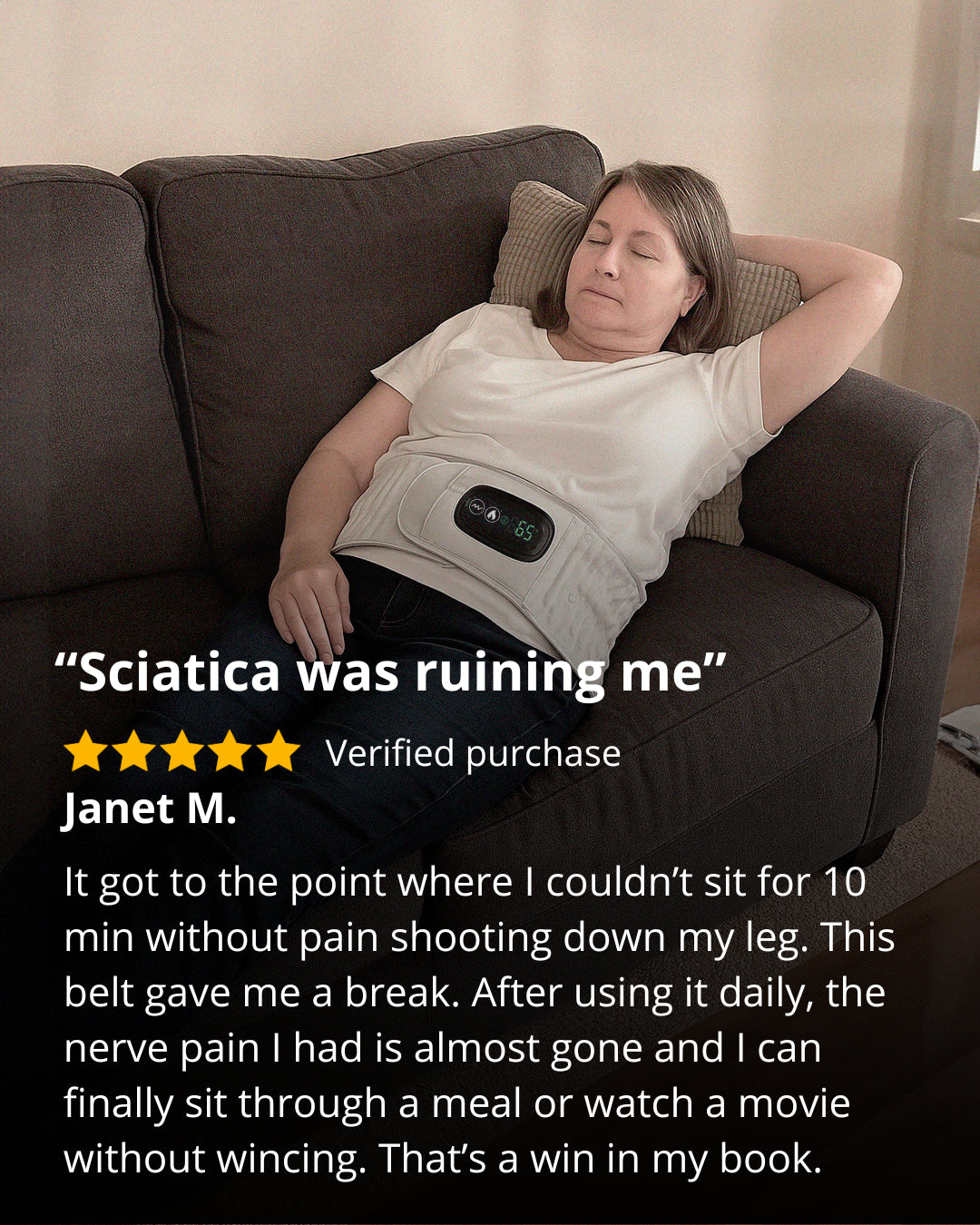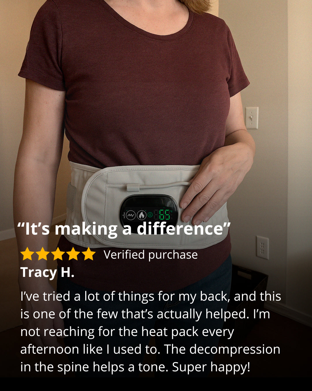 I’ve tried every brace and heat pad. The red light therapy on this belt gives a soothing, deep relief that nothing else provides — it’s amazing